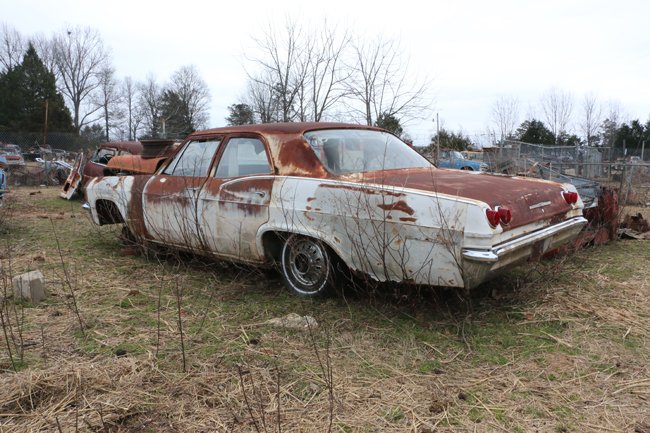 The engine and transmission are gone from this 1964 Ford Fairlane 500.
