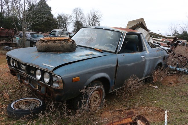 There are very few foreign cars in the yard. This Subaru Brat is available for parts removal.