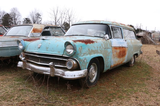 Watts says he’d like to sell this 1955 Ford Ranch Wagon as a complete car. It has a good engine and title.