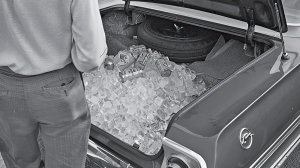 Dave Friedman’s casual shot of the 1962 Chevrolet Impala with an open trunk filled with a mountain of ice cubes and beer, for the hard-working race team, captures the spirit of the day as well as any podium-victory photo can.