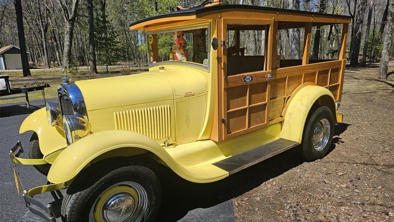 “One-of-a-kind 1929 Ford Model A Woody surf wagon with matching longboard!” the seller states. This Model A wears a cheery yellow paint job and has reportedly won awards at local shows. One of the photos included with the listing shows the bare frame of the vehicle, demonstrating that its restoration was comprehensive. The seller adds a little more context to the vehicle’s history:
