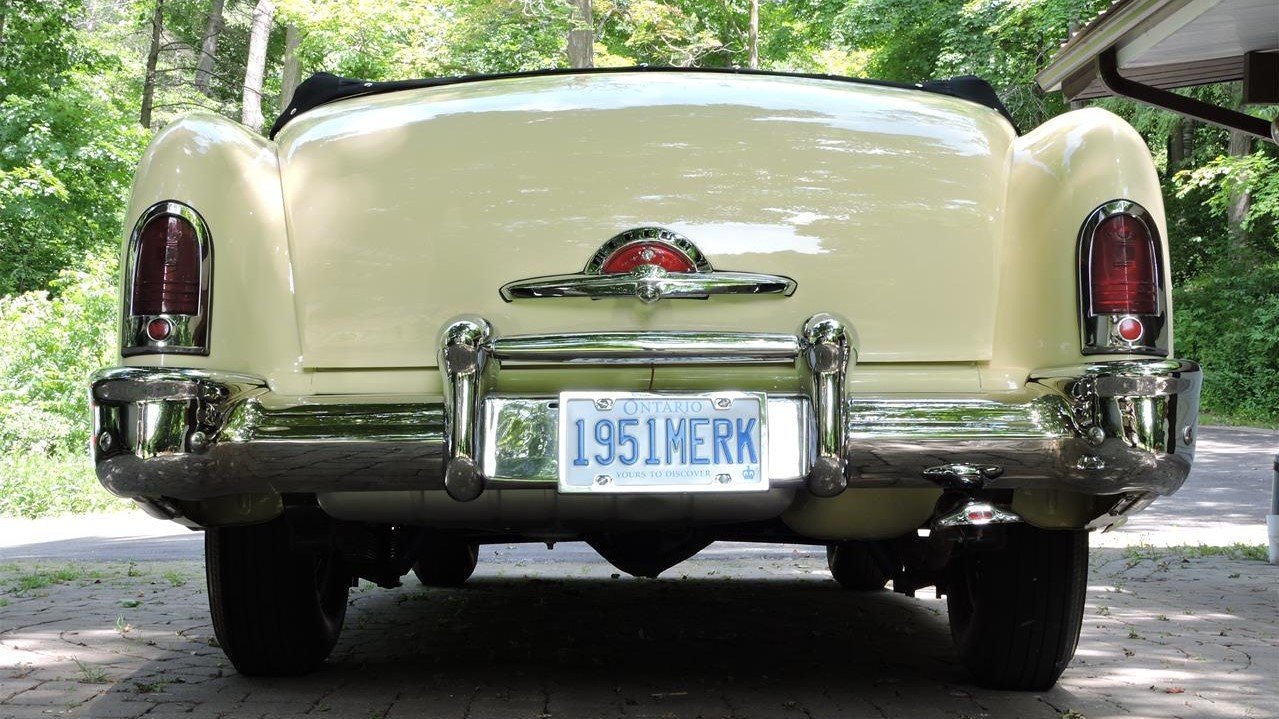 The vanity plate “1951MERK” speaks to fact that this car has been enthusiast-owned. On top of that, the body shows well throughout, and a set of wide-whitewall tires complete the period-correct look. Other features include a hood ornament, a two-piece windshield, a spotlight, and rear wheel skirts. The seller states that the convertible top has been replaced and features rebuilt hydraulics. The power windows, power seat, and power-retractable top are all functioning as designed.