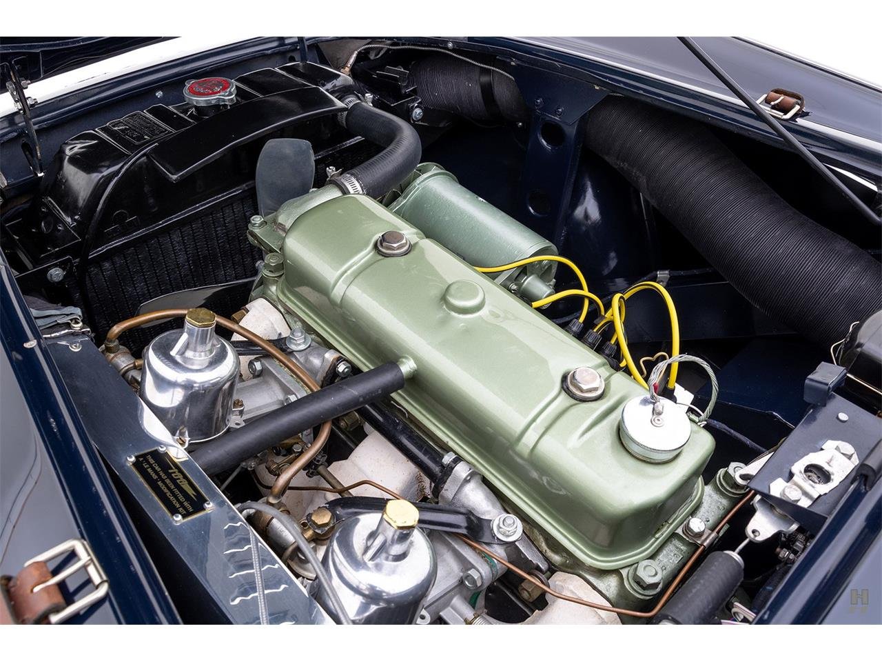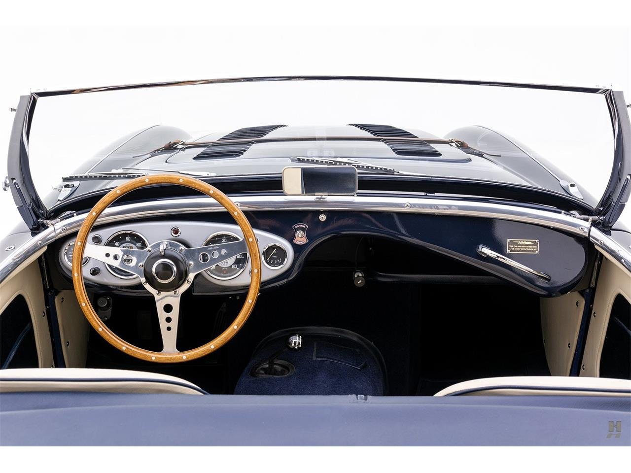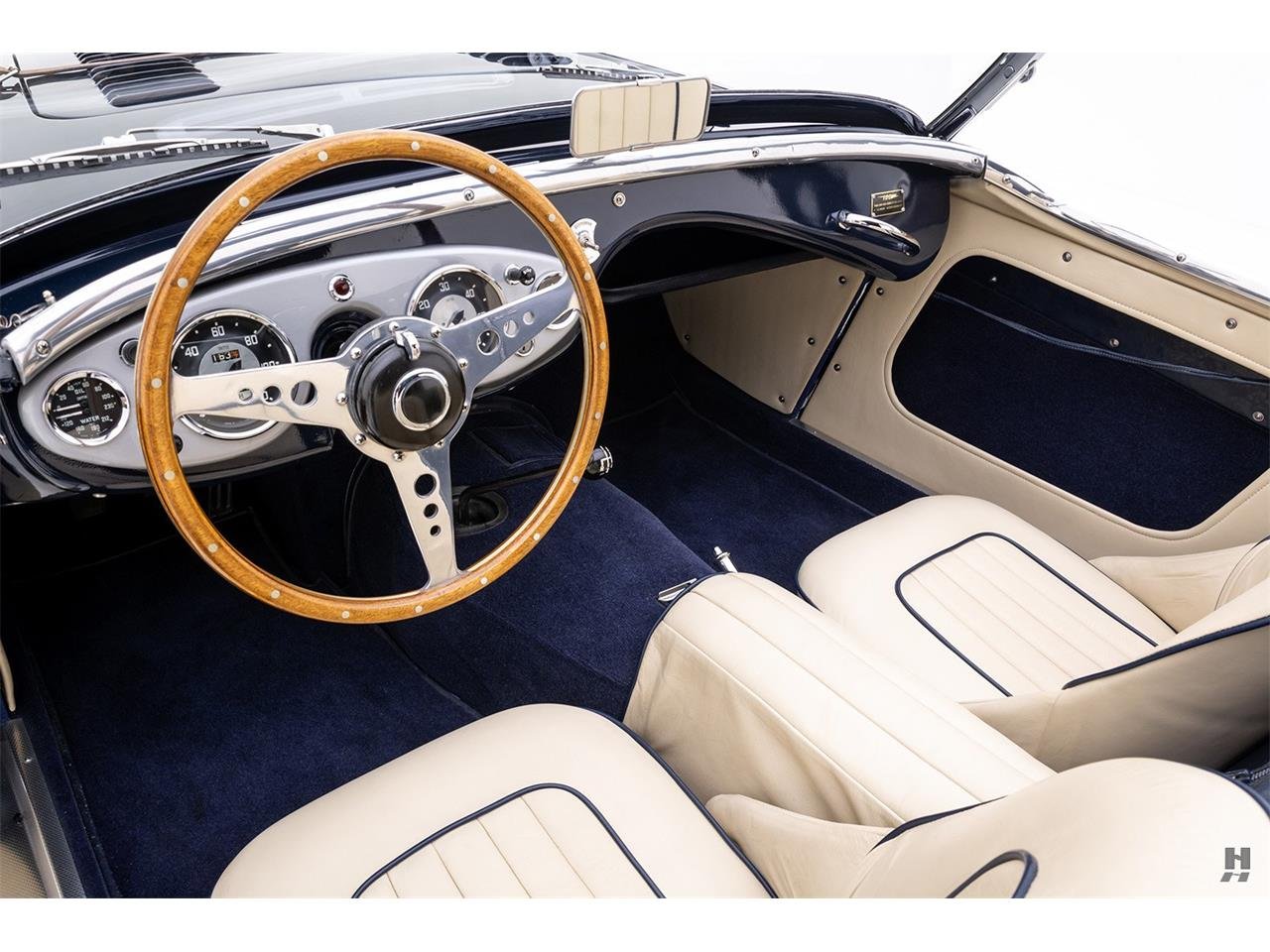 The seller describes this Healey 100 as being finished in a gorgeous combination of dark blue with a cream interior piped in blue, it has a Moto-Lita steering wheel, chrome wire wheels, and Lucas Flame-Thrower headlamps fitted to complete the marvelously sporty package. They add that this example benefits from a well maintained and detailed restoration, with high quality paintwork, excellent chrome, and a lovely, inviting cockpit. They also state that this is an original left-drive USA-Spec car that was completed in February 1956 and when new was equipped with laminated windscreen, MPH speedometer, and heater. They believe that the Le Mans pack was dealer-installed, though it is not clear if this was before or after delivery to its first owner. Importantly this Healey 100 retains its original numbers-matching engine, per the BMIHT certificate.