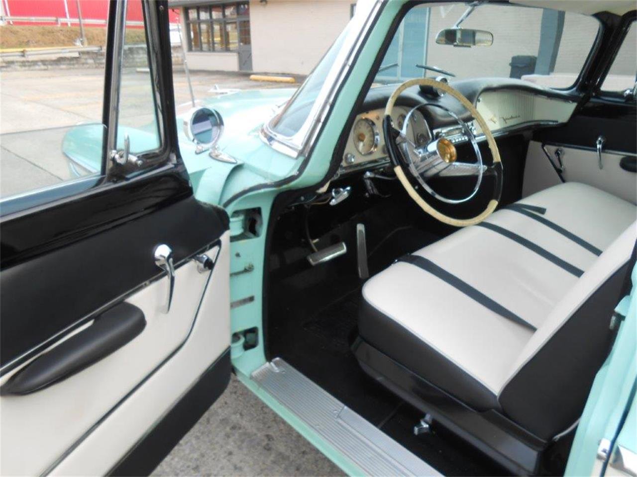DeSoto’s only station wagon was in the Firedome series. Though coupes and sedans featured sweeping “Super-Highway” safety lights on the tail, the station wagon featured a unique, unusual design (shared with the 1956 Chrysler wagon) that looked nothing like the Super-Highway motif that would become a DeSoto trademark for several years. For that reason alone, this DeSoto Firedome station wagon, one of 2,950 built for 1956, warrants attention. Finished in Light Aqua and White, this Mopar hauler is said to have been serviced by Chris Campbell of The Vintage Connection where, according to the seller, “over $10,000 was spent on restoring the interior with a reconditioned plywood floor” plus new headliner, carpet, and door panels. “The bumpers, emblems, and trim pieces were reportedly replated by the previous owner, and the rear and side windows are also said to have been replaced,” adds the seller