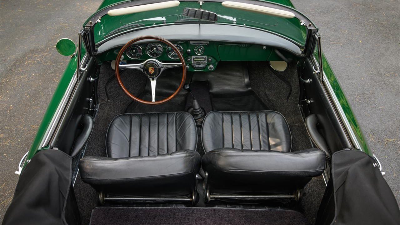 The exterior just received a comprehensive detailing which highlights the Irish Green paint, but still shows some minor wear from over the years. The seller closes stating that this 356C is a text book good driver, and is ready for some top-down cruising. The tool roll, jack, spare tire, Kardex, owner’s manual and driver’s manual accompany the sale of this car.