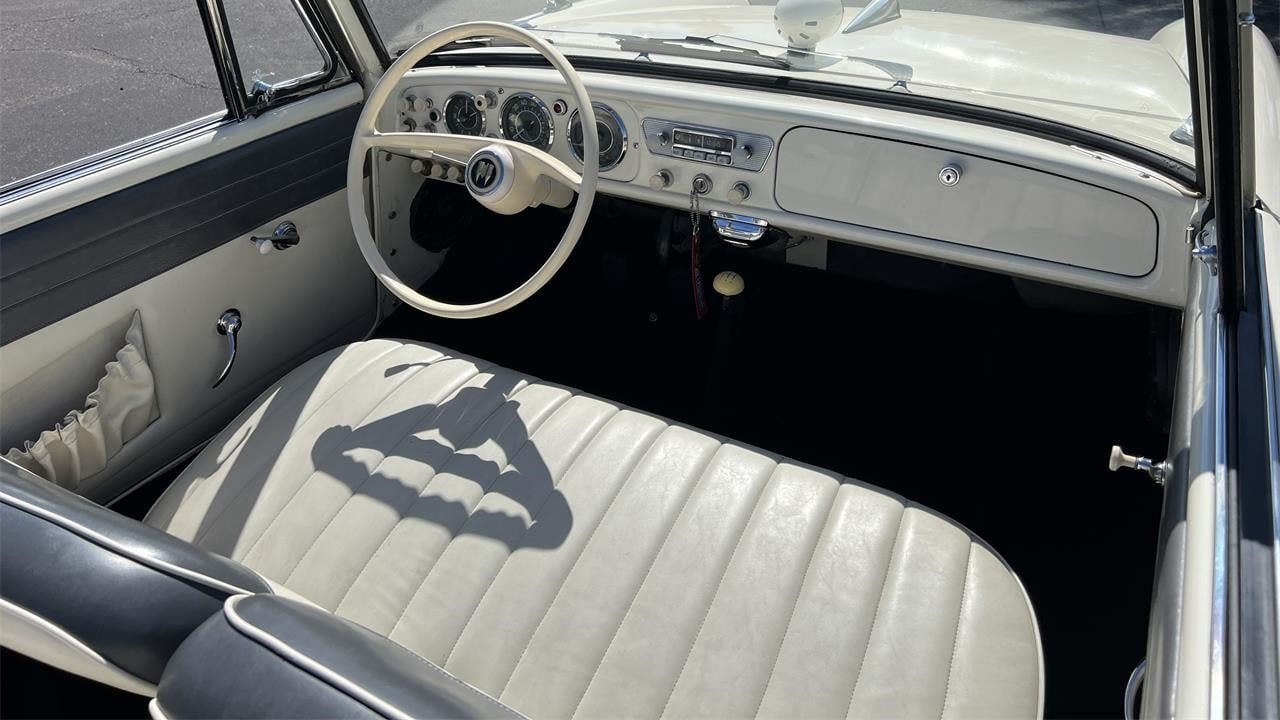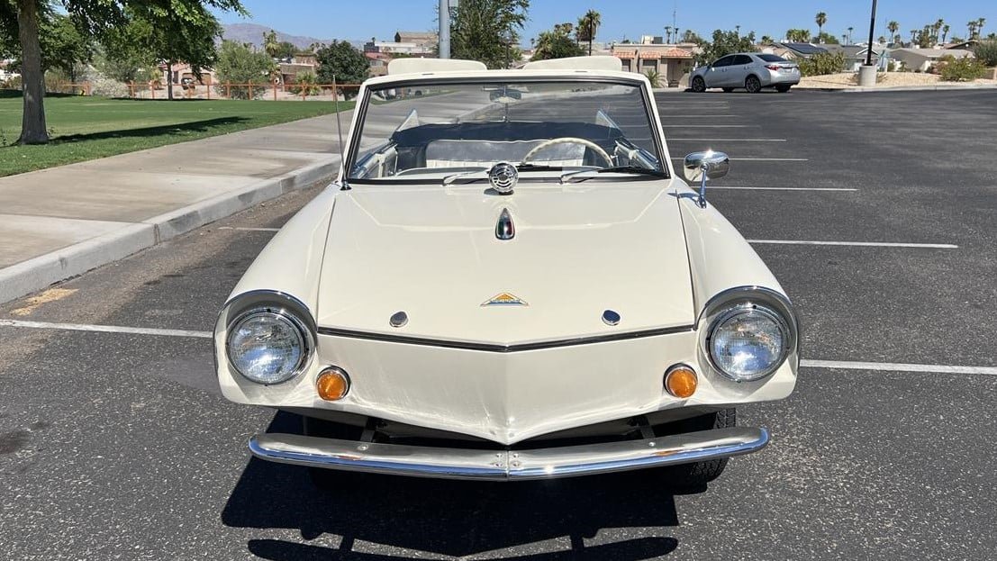 This nicely presented Amphicar has a clever “IFLOAT2” Arizona license plate. There were four colors available: Regatta Red, Lagoon Blue, Beach Sand White, and Fjord Green. The white exterior on this car was recently restored. “I just had it professionally painted which took a year,” the seller says.
