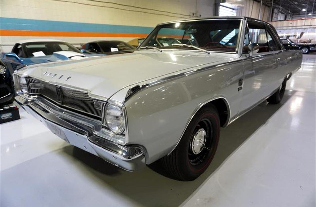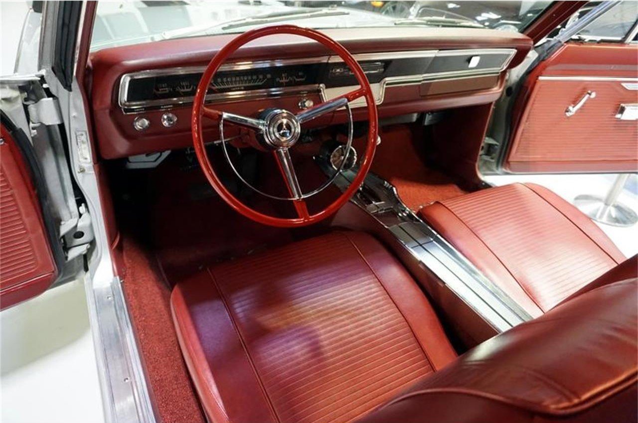 This restored 1967 Dodge Dart GTS featured the extra-cost Buffed Silver paint complemented by a black vinyl top and red interior. Front disc brakes, console, right-side mirror, and fast manual steering are some of the features ordered for this particular vehicle. “The previous owner [installed] a new fuel tank, fuel pump, points, water pump, hoses, idler arm, shocks, brakes, redline tires, and torque converter,” says the seller. “He also had the engine and transmission rebuilt, which the odometer reflects as 907 miles.”