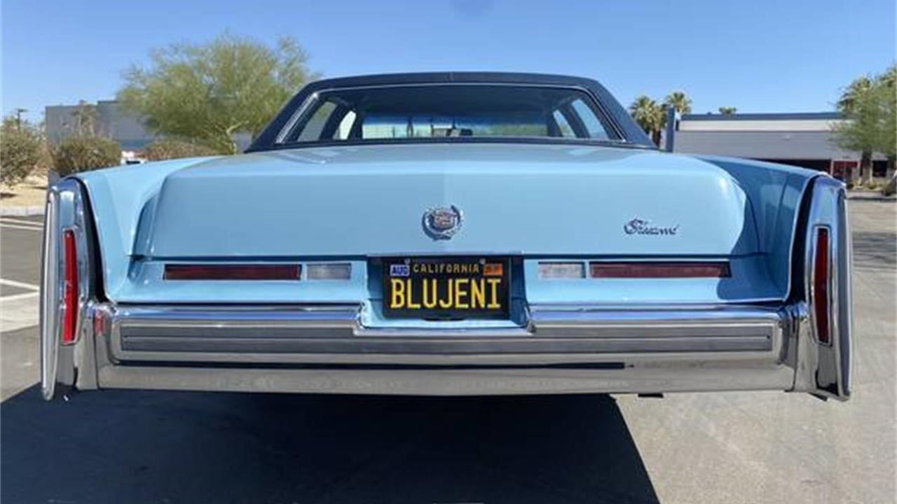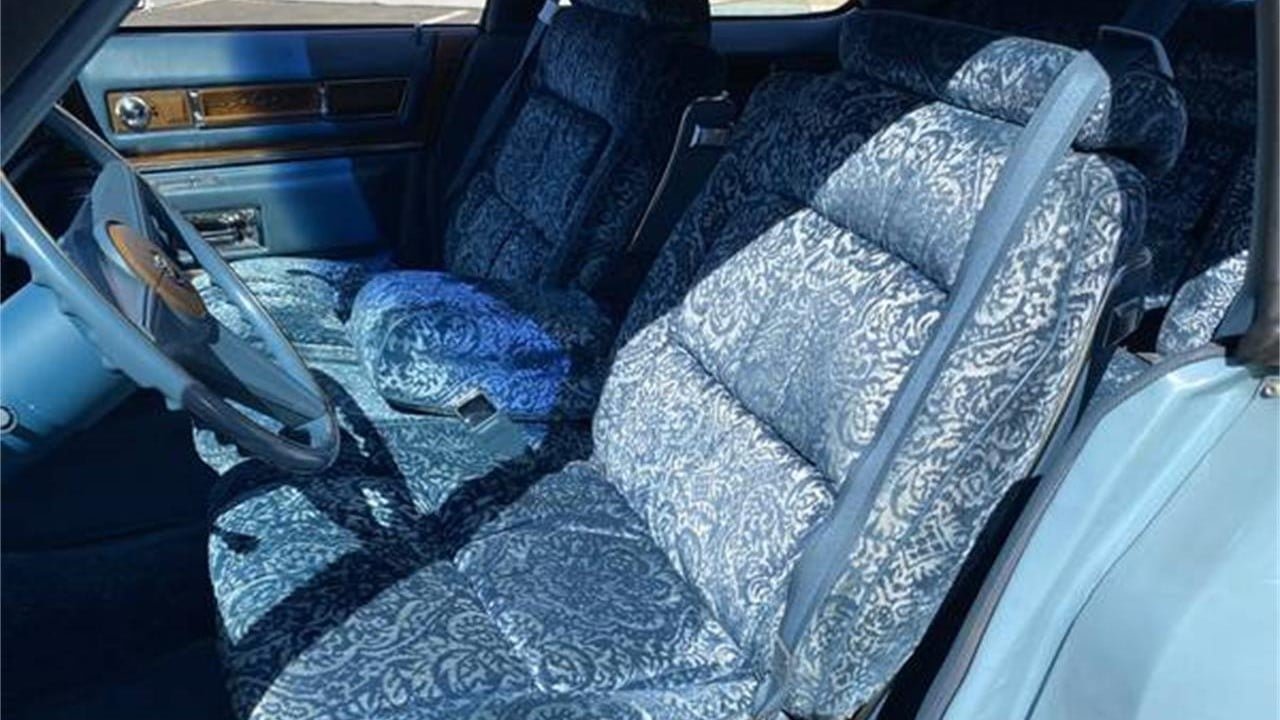 “Available for sale is a fantastically original 1975 Cadillac Fleetwood Brougham,” the listing says. “Just two owners from new with only 30,500 original miles. Stunning all-original paint in Jennifer Blue with Dark Blue Tuxedo vinyl top and outrageous, optional, and ornate Monticello velour interior.”