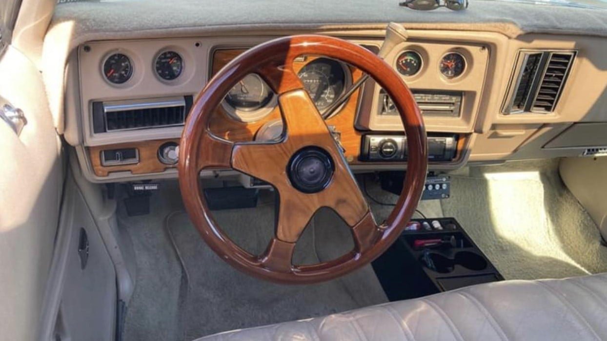 The interior is luxurious and well-appointed, featuring upgrades such as a woodgrain steering wheel, a carpeted dash mat, and a modern Kenwood head unit. In the trunk, we see a trio of Rockford Fosgate subwoofers cranking out the bass to go with the tunes. The listing says that the odometer reads 50,000 miles but we aren’t sure on exact / actual mileage, so prospective buyers should do their due diligence.