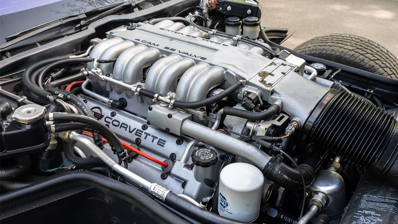 Tasked with building the ultimate performance-tuned C4, Lotus cooked up the “LT5” 5.7-liter engine using an aluminum black, quad camshafts, 32 valves, and a unique air management system. This 375-horsepower V8 was the key ingredient in the ZR-1 Corvette’s magic, but the package didn’t stop there: Additional treatment included a standard Bosch anti-lock braking system, a Bilstein “FX3” suspension, and wider tires compared to the standard Corvette. Torque was fed rearward through a ZF six-speed manual transmission and a limited-slip rear end.