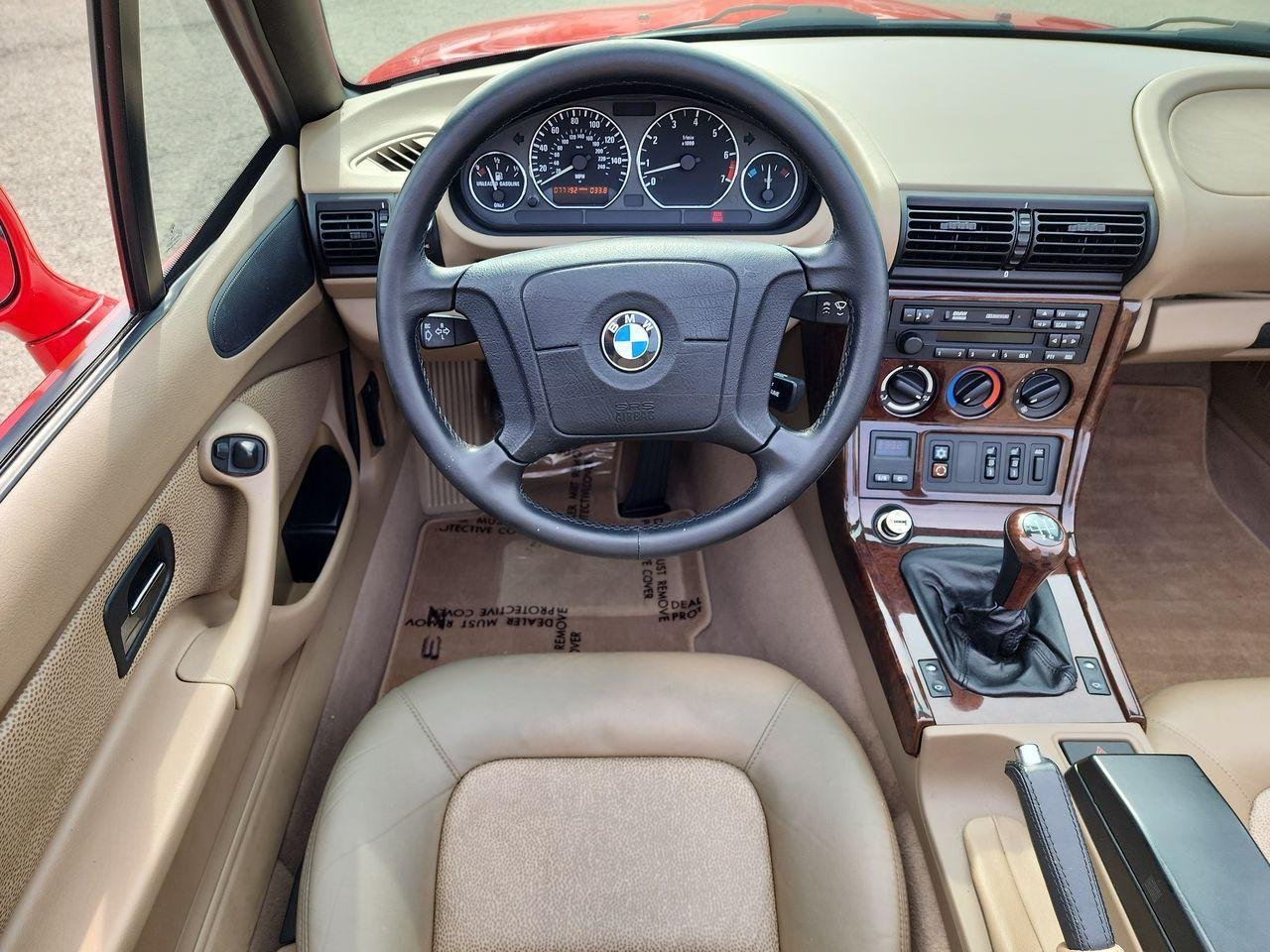 This Z3 is painted in its original Hellrot red over its original Beige Oregon leather interior with a black convertible top.