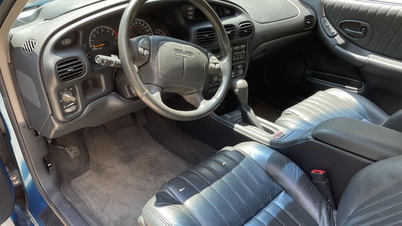 Power for this pace car comes from a 240-horsepower “Series II” supercharged 3.8-liter V6 combined with a four-speed automatic transmission. The listing outlines a list of areas that received recent mechanical attention, including a rebuild of the supercharger as well as replacement of the rear brake pads and rotors, water pump, power steering pump, valve cover gaskets, spark plugs and wires, and fuel injectors. The interior has typical Pontiac switchgear for the era, with plenty of gray buttons along with options like dual-zone automatic climate control, a Delco CD stereo with an equalizer, head-up display, and of course a placard on the center console identifying this as unit 719 from the production run of 1,500 total.