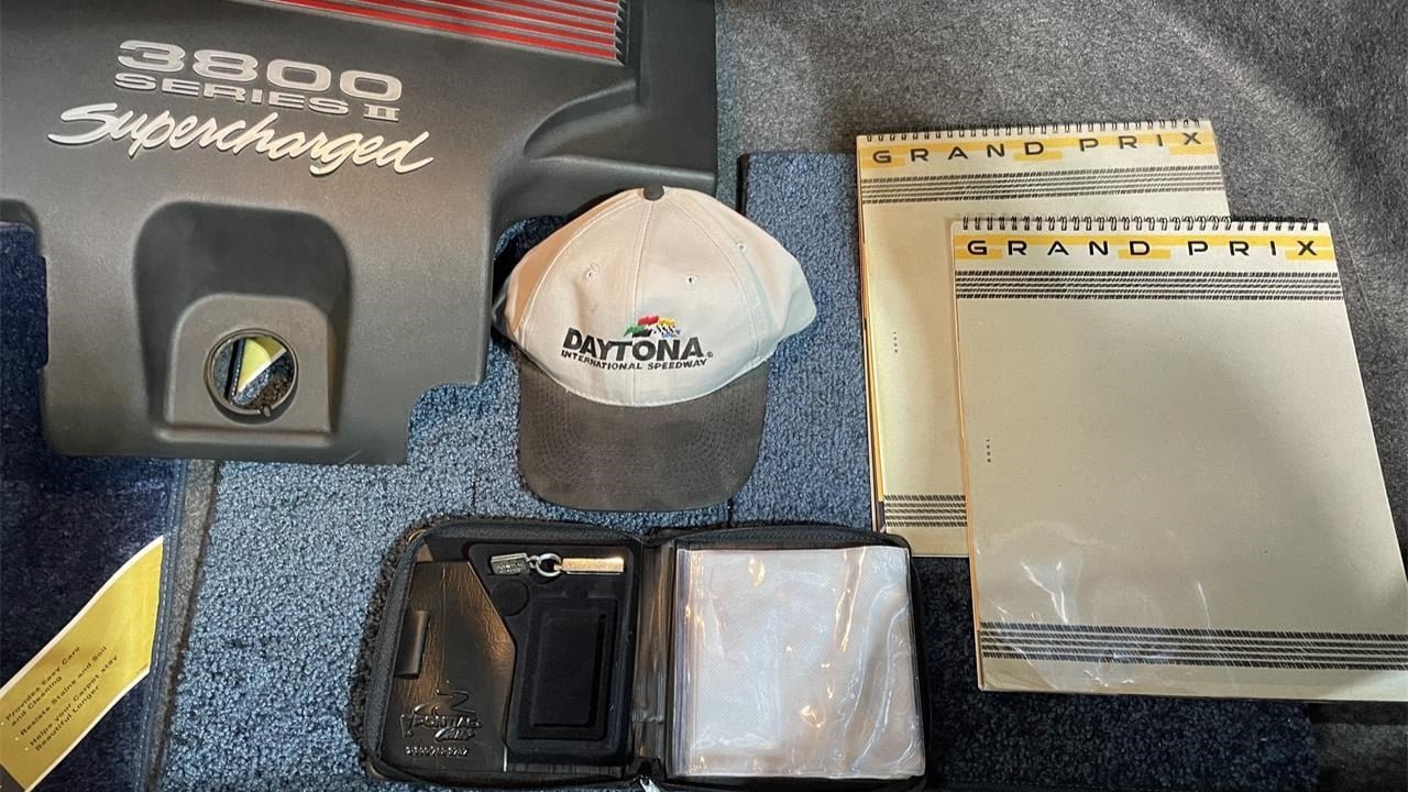 The asking price for this Grand Prix is $14,500, which includes some swag like an embroidered baseball cap from Daytona International Speedway.