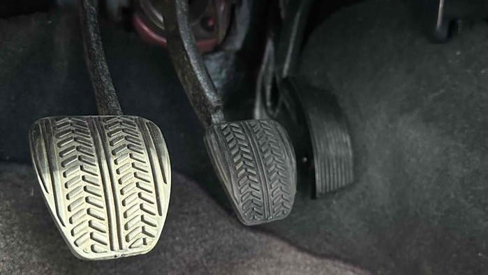 Showing fewer than 20,000 miles on the odometer, this Vermilion Red (code E8) Mustang coupe remains unmodified and well-kept. The listing states that the car has “No stories or accidents,” and the Carfax is available upon request. There are service records going back to new from the Ford dealer. The “dual cockpit” interior is trimmed in charcoal leather and has Cobra-embossed floor mats. My favorite feature of the cabin is the design on the rubber pedal pads, because they look like car tire treads.