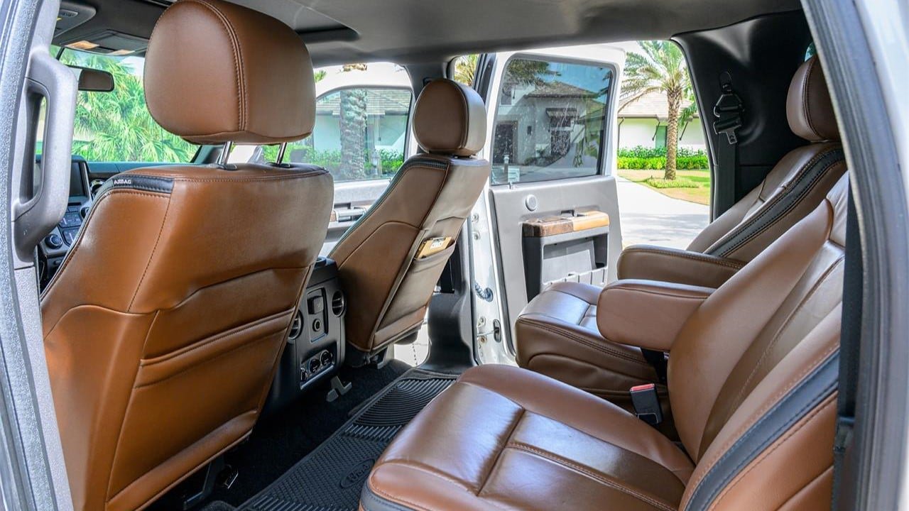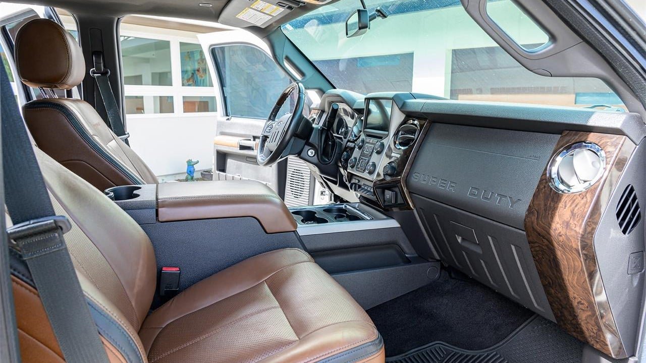 As one would imagine, creating a show-level custom build takes effort, and this F-250 left no stone unturned: The listing says that within the last year, the vehicle received Bilstein shock absorbers, Roush SD wheels with 34-inch Michelin tires, ceramic window tint, LED headlights, color-matched bumpers, and an auxiliary LED light bar. Along the lines of luxury, the build comes with power-adjustable tow mirrors, a moonroof, leather seats, heated and cooled front seats, a heated steering wheel, SYNC infotainment, and a Sony audio system.