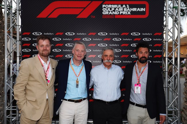 Maarten ten Holder (Head of RM Sotheby’s Europe & Chief Auctioneer), Sean Bratches (Managing Director Commercial Operations, Formula 1®), Chase Carey (CEO of the Formula 1® Group), and Shelby Myers (Global Head of Private Sales & Car Specialist, RM Sotheby’s) stand for a photo opportunity at a press conference held 29 March at the Gulf Air Bahrain Grand Prix 2019 to announce the new global collaboration between the two companies – © Motorsport Images