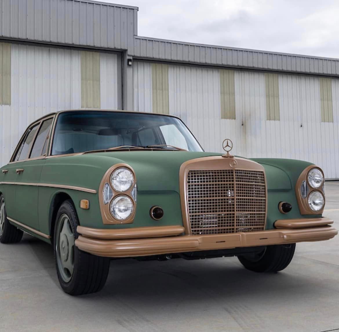 • The Mercedes features a modern diesel engine that was converted to run on biodiesel, plus it features a synthetic suede-like interior that comes from recycled bottles.