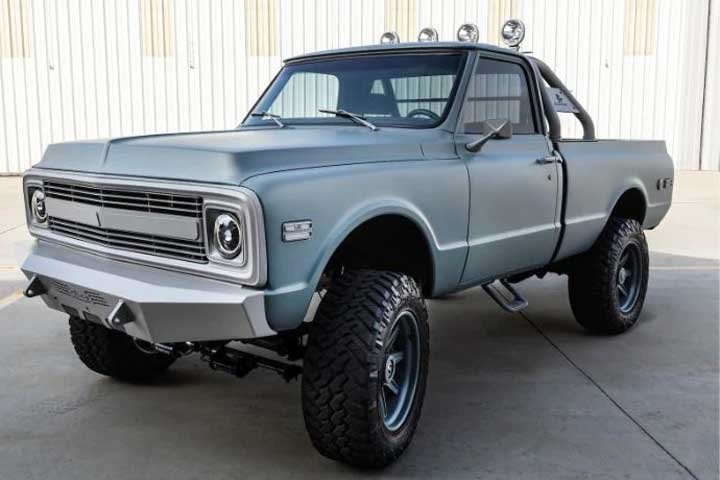 • The Chevrolet K10 uses a converted Tesla drivetrain.