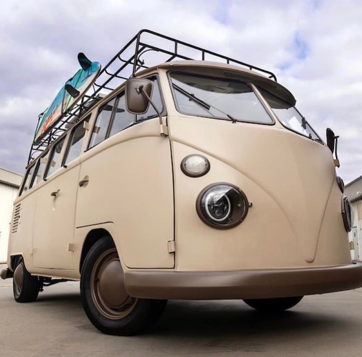• The VW Bus uses a custom-built BBQ that’s recharged via solar panels, and the set of surfboards were made from recycled Firewire material.