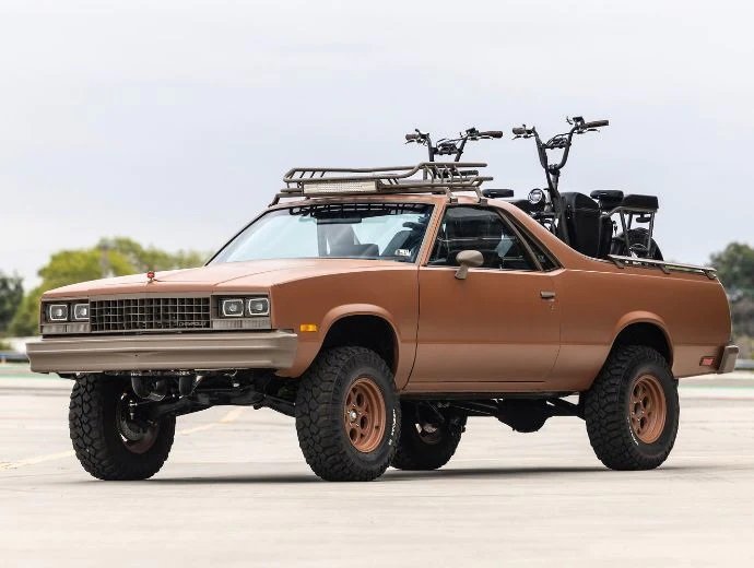 •  The El Camino features two miniature solar panels that charges a pair of Rad Runner electrobikes.