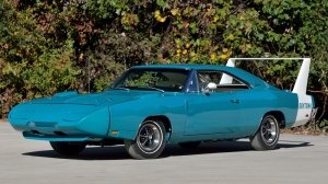 Image Credit: Mecum Auctions Few muscle cars are as visually emphatic as the pointy-nosed, enormously winged Plymouth Road Runner Superbird and its sister car, the Dodge Charger Daytona. With Looney Tunes–derived naming and an over-the-top silhouette, the menacing power of the Superbird’s 426 cubic-inch V-8 led to a dominating 33 wins out of 48 races at the hands of none other than Richard Petty.