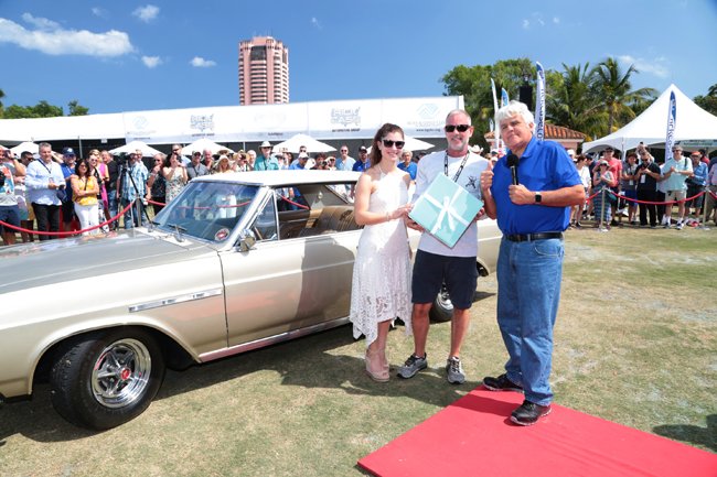 The memorable weekend continued with the Boca Raton Concours d’Elegance on Sunday, February 24th sponsored by the Rick Case Automotive Group. The morning started with a private Q&A brunch hosted by Jay Leno from the “Jay Leno’s Garage” TV Show and Wayne Carini host of Chasing Classic Cars.  Following the brunch, Jay Leno walked through the show field meeting automobile and motorcycle owners and event attendees as he searched for his favorite automobile and motorcycle to present the Jay Leno “Big Dog Garage Award”.