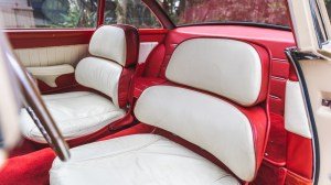 Image Credit: Nathan Deremer, courtesy of RM Sotheby’s. The interior’s ubiquitous use of red is seen in the carpet, seatbelts, upholstery, and metal dash.