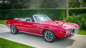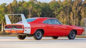 Clockwise from top left: a 1969 Pontiac Firebird Convertible, a 1970 Ford Mustang Boss 429, a 1965 Shelby G.T.350R Fastback, and a 1969 Dodge Charger Daytona.