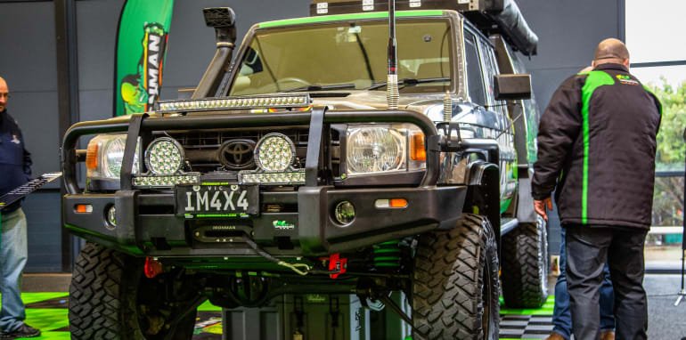 Next to a 76 Series LandCruiser that is fresh from a coil conversion, is a bit of a veteran of the Australian 4X4 show scene: the Ironman 4X4 79 Series. It’s here to show of some of Ironman’s gear, which includes its Foam Cell Pro suspension, combination-style driving lights, barwork and auxiliary 12V gear.