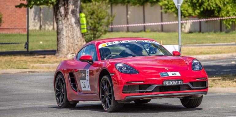Our Cayman was the perfect car for Targa. Not only did we have an impressive 425L of luggage space to fit our bags and camera gear in, but it was comfortable on the 2.5-hour drive on the freeway to Winton. It did take some time to get the hang of the cruise control, and there was a fair bit of tyre roar, but it is a sports car after all. When Sport driving mode was engaged, it opened up the exhaust sound and a crackle and burble could be heard when backing off the throttle.