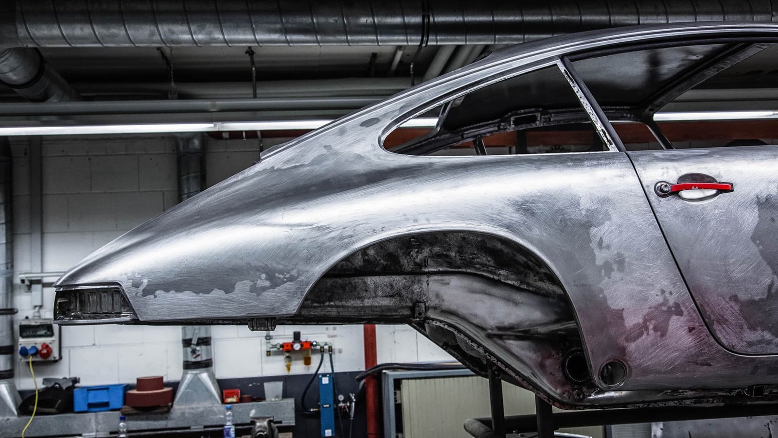A donor vehicle – a 1965-built 911 – was found to provide some of the missing body parts and work on the now bare metal shell continued for 12 months.