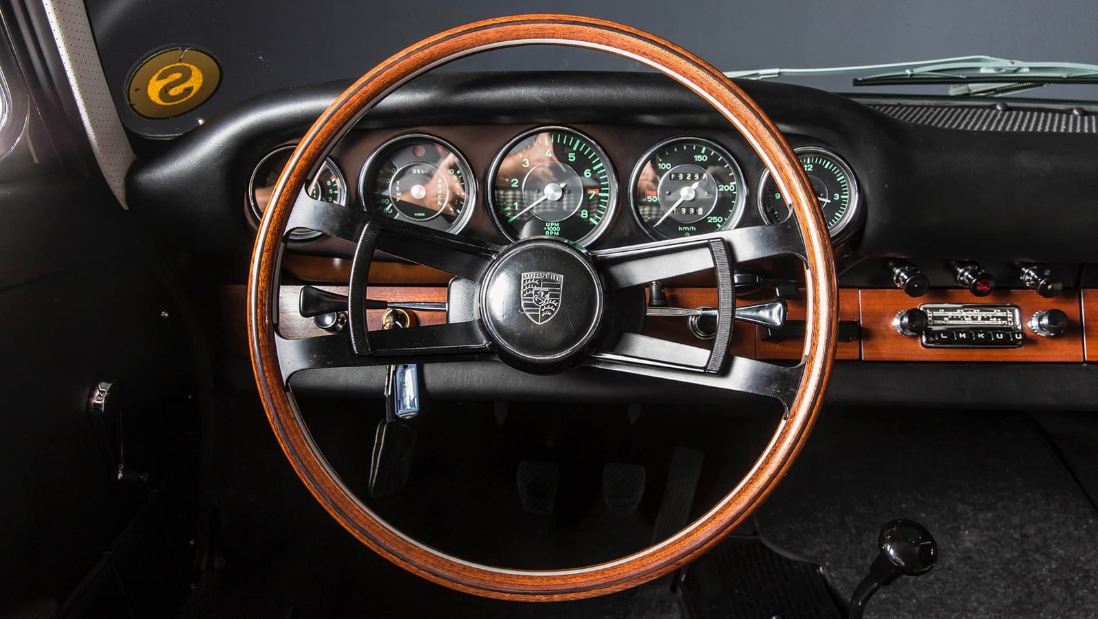 Features, like the leather boot around the gear lever, a design unique to those early Porsche 901s.