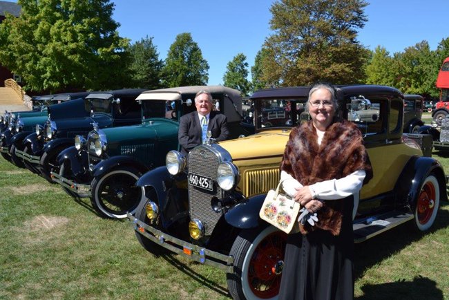 Period attire next to Model As. Photo – Gilmore Car Museum