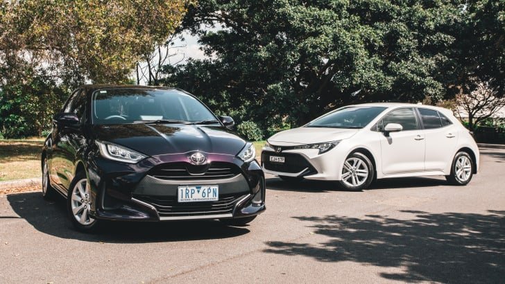 The new Toyota Yaris hatch (pictured below left, next to a Corolla) is not far off Corolla pricing.