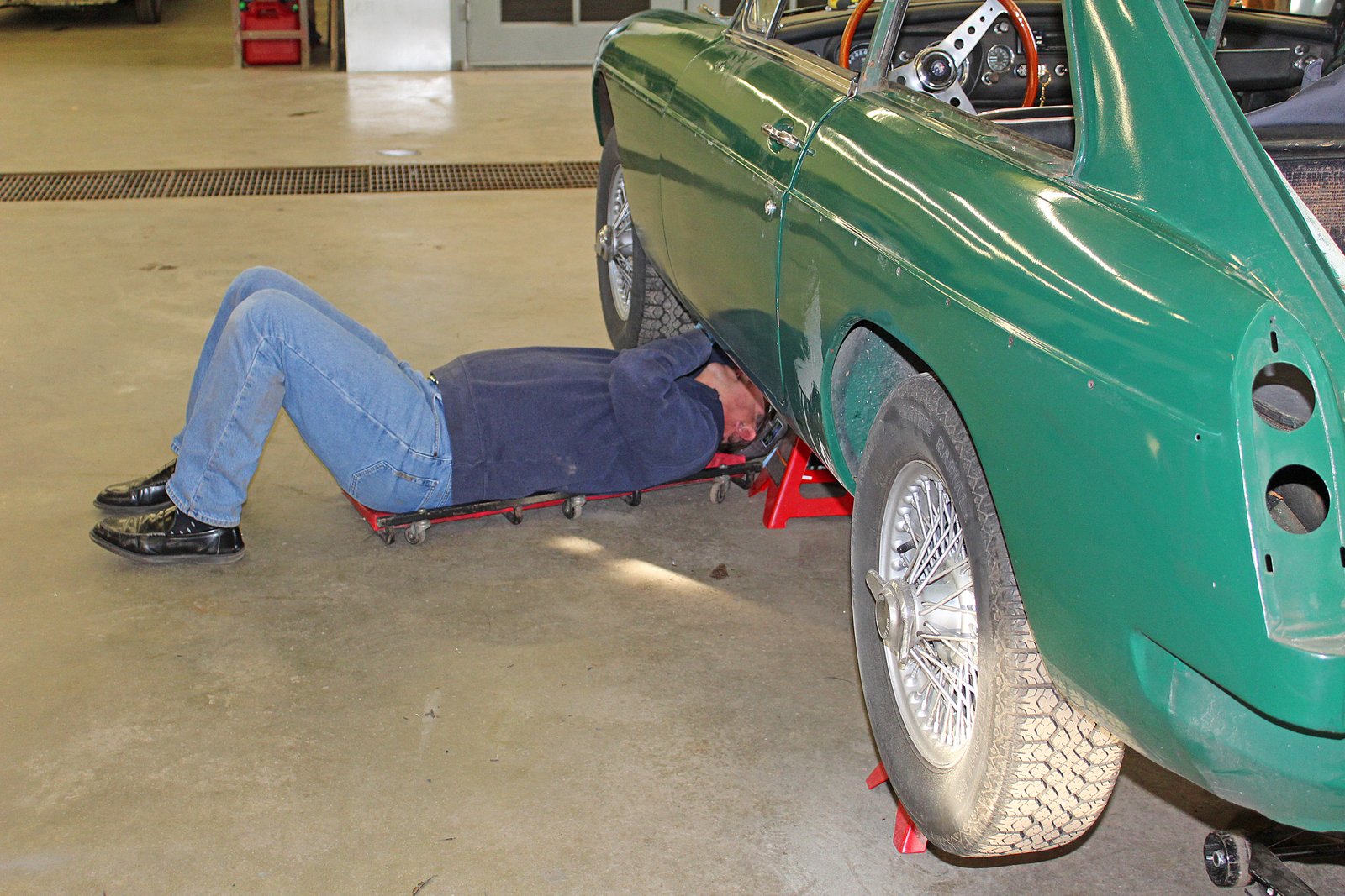 Actually, pulling an engine on an MGB is not that difficult a process, especially if you have a proper shop and the proper tools.  The Paddock Classic Car Restorations shop has the necessary tools as well as the skilled hands needed for the job.