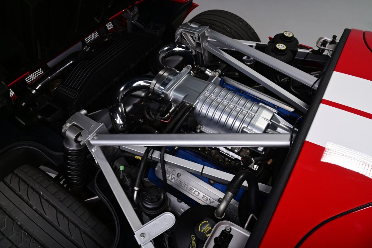 Everything else is stock Ford GT, from the red paint with white stripes, black interior with McIntosh stereo and, unusually, the base aluminum rims. Unlike all those other mothballed GTs you see at auction, this one has actually been driven — to the tune of 19,985 miles. In other words, this 2005 Ford GT is a win/win: you can drive it, and the drive will be even more satisfactory thanks to HPE’s input.