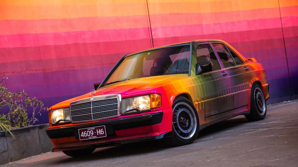 For some local appeal, Melbourne street artist Drez applied his signature geometric art style to a W201 Mercedes-Benz 190e 2.3-16 Cosworth, producing a hand-painted, one-off art car – which is still driven on the road.
